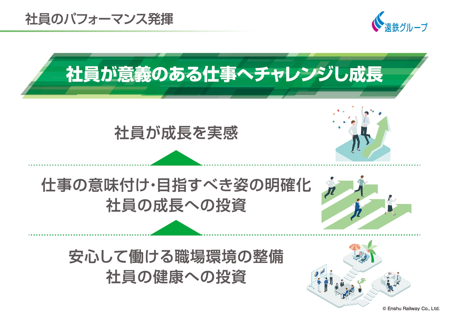 私たちは、「社員からも顧客からも選ばれる会社」を目指しており、その中心に「人」を据えています。遠鉄グループの中期経営計画において、基本方針としても「人(社員・地域・顧客・取引先等)を大切にして企業価値を高める」を掲げており、これは私の強い信念でもあります。