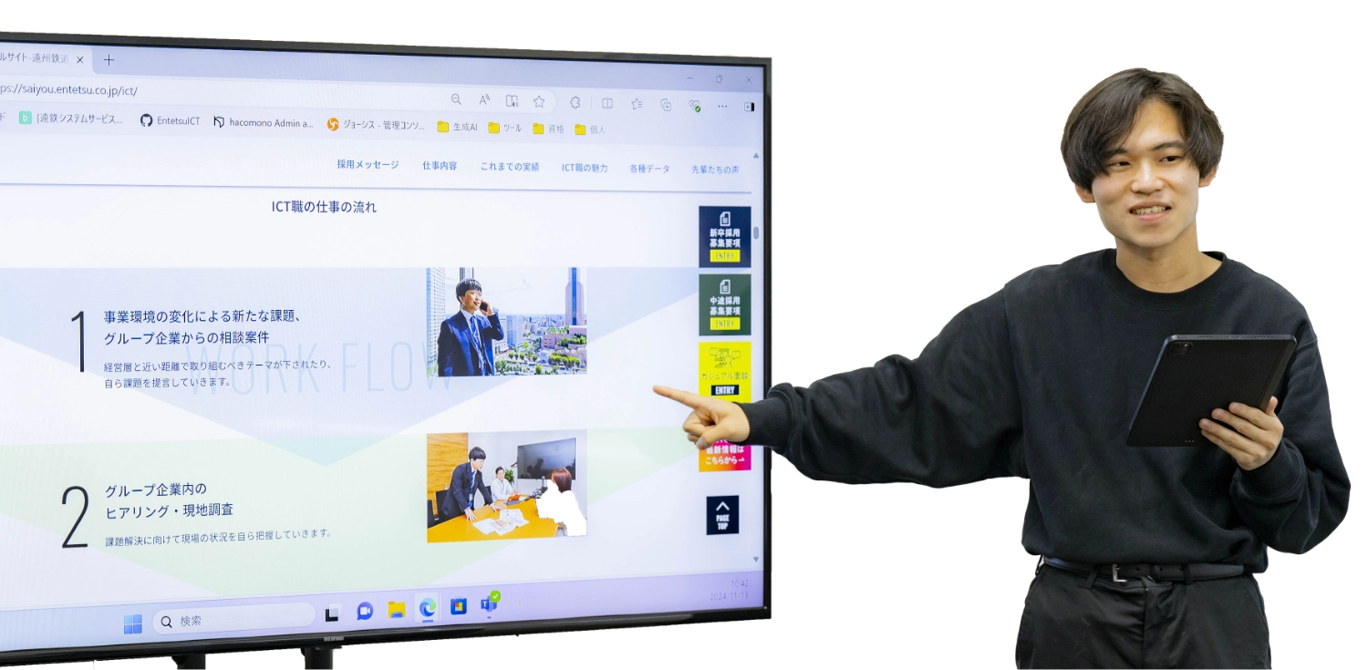 集めたデータをIT技術を使い分析、可視化します。コンサルティングを行い課題解決のための提案を行います。経営層と近い距離で取り組むプロジェクトも多く、遠鉄グループにとって大切なプロセスを担います。